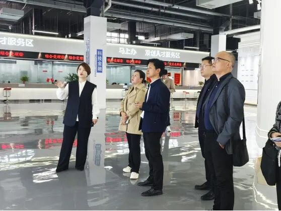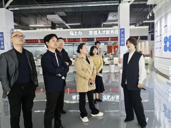 在新乡智慧岛负责人潘子怡的陪同下我们走访调研了智慧岛展厅、行政服务大厅、代表性企业。通过走访和座谈,我们了解到目前该园区有新乡市红旗区政府主导,