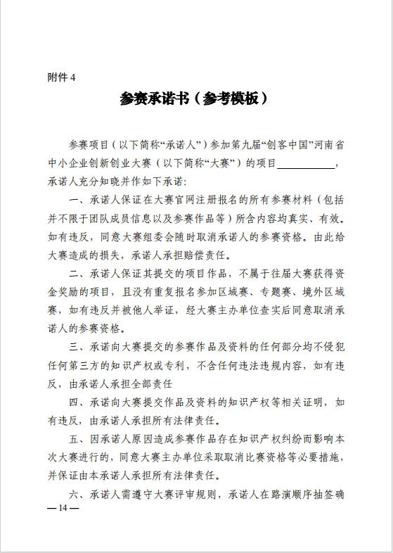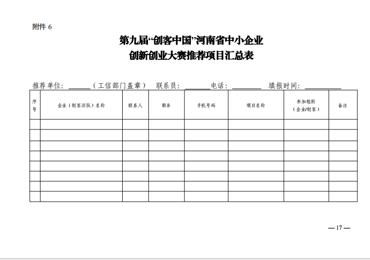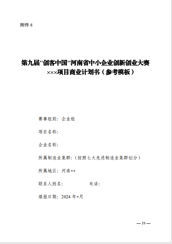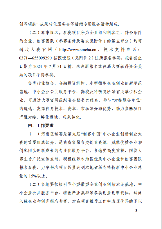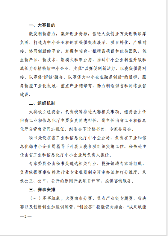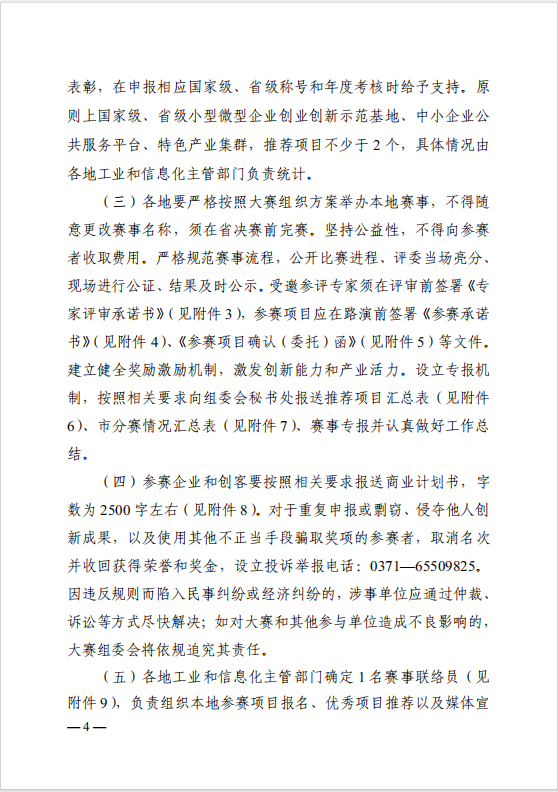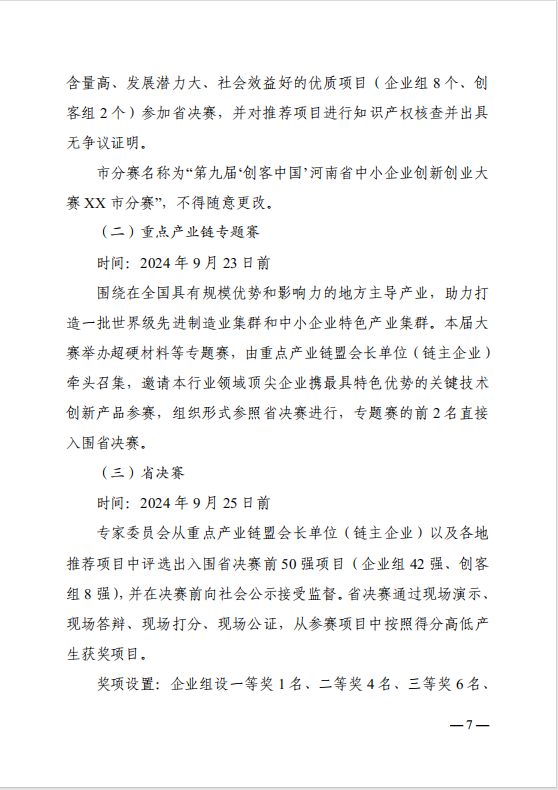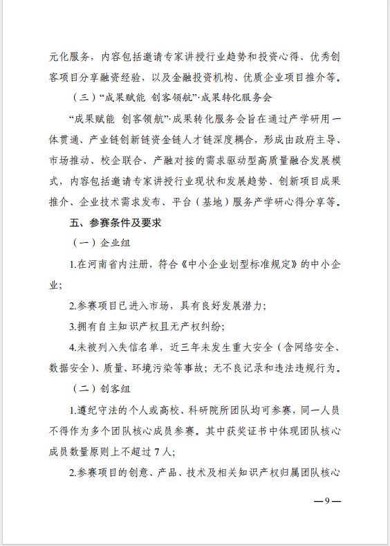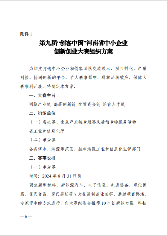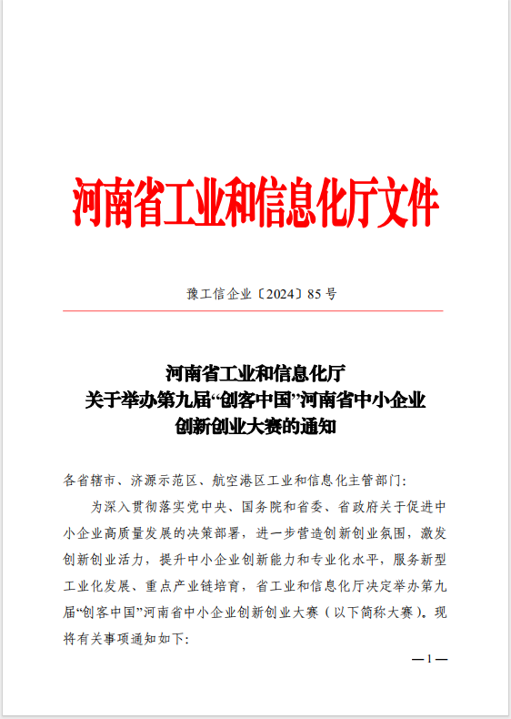 深入贯彻落实党中央、国务院和省委、省政府关于促进中小企业高质量发展的决策部署,进一步营造创新创业氛围,激发创新创业活力,提升中小企业创新能力和专业化水平,服务新型工业化发展、重点产业链培育,省工业和信息化厅决定举办第九届“创客中国”河南省中小企业创新创业大赛(以下简称大赛)。现将有关事项通知如下: