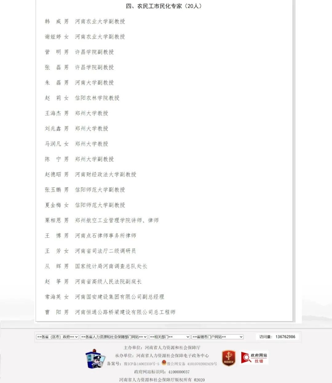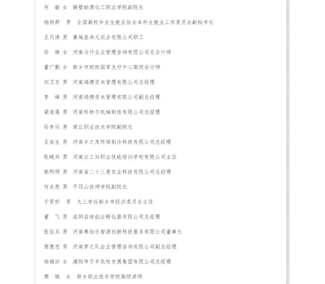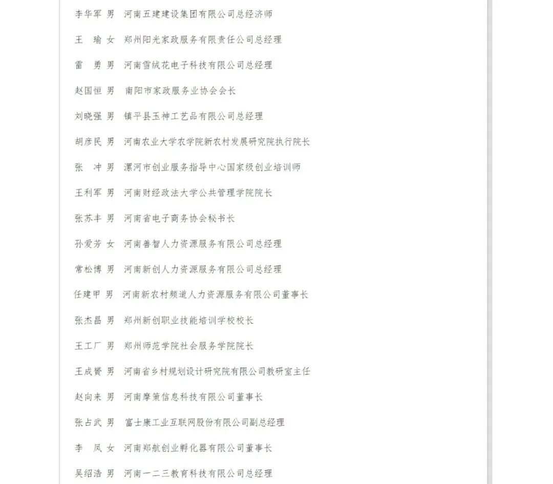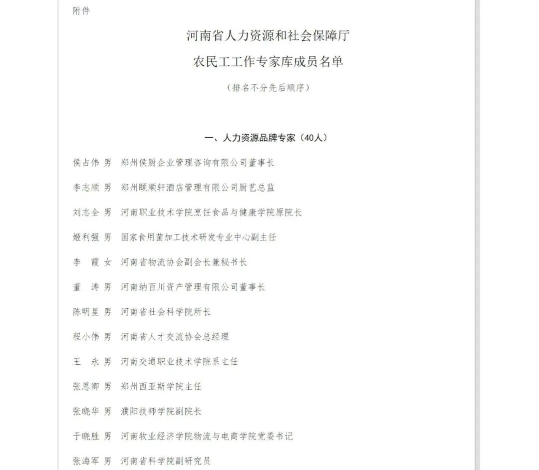 河南省人力资源和社会保障厅农民工工作专家库成员。