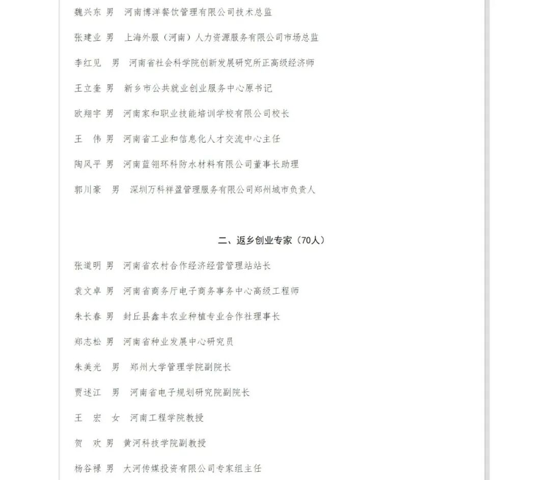 专家库共有人力资源品牌专家(40人)返乡创业专家(70人)乡村振兴专家(50人)农民工市民化专家(20人)。